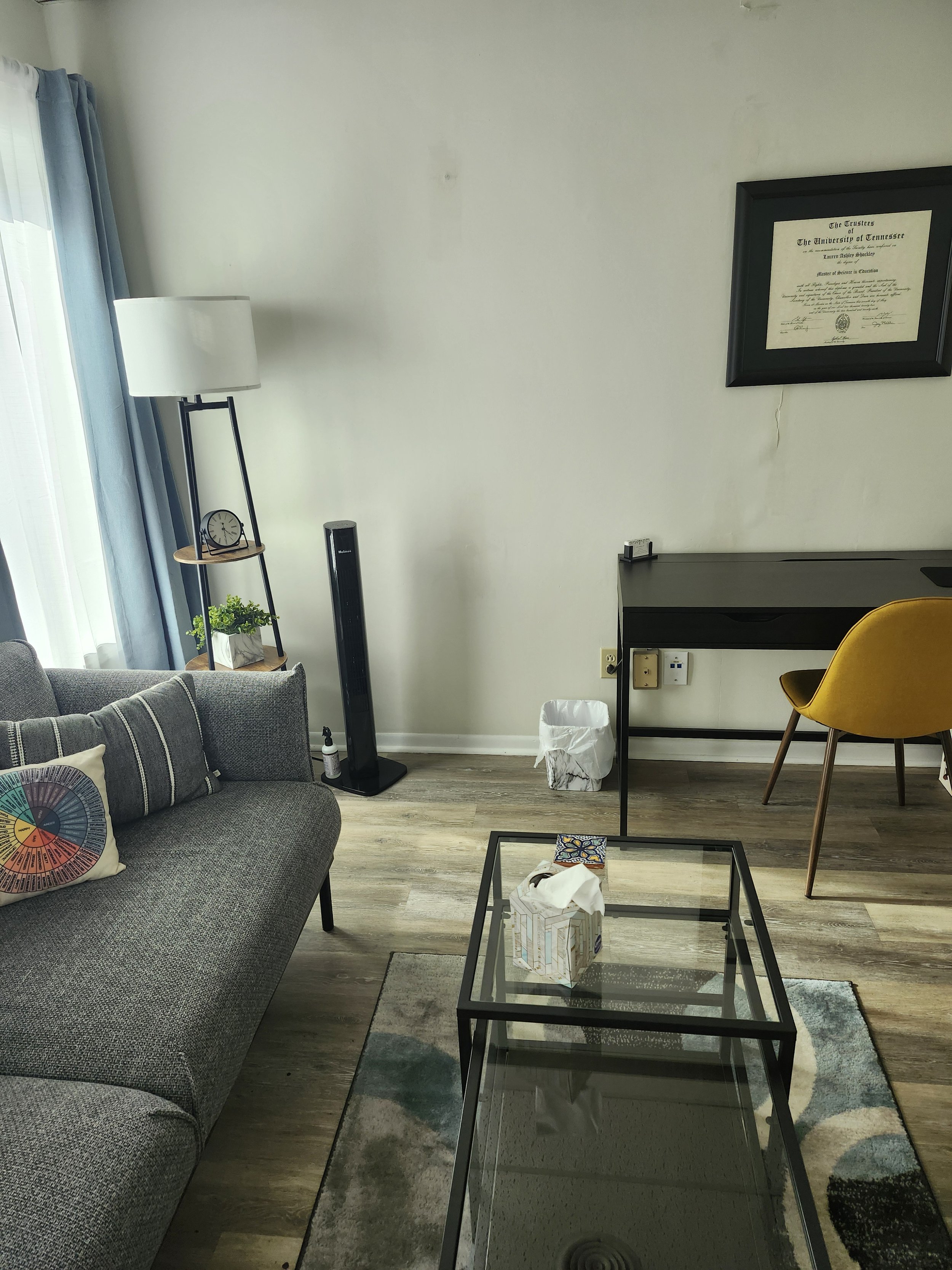 Hello! I am a Licensed Professional Counselor in the state of Tennessee. I received my Master of Science in Clinical Mental Health from the University of Tennessee.